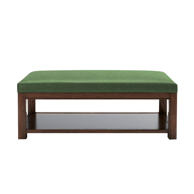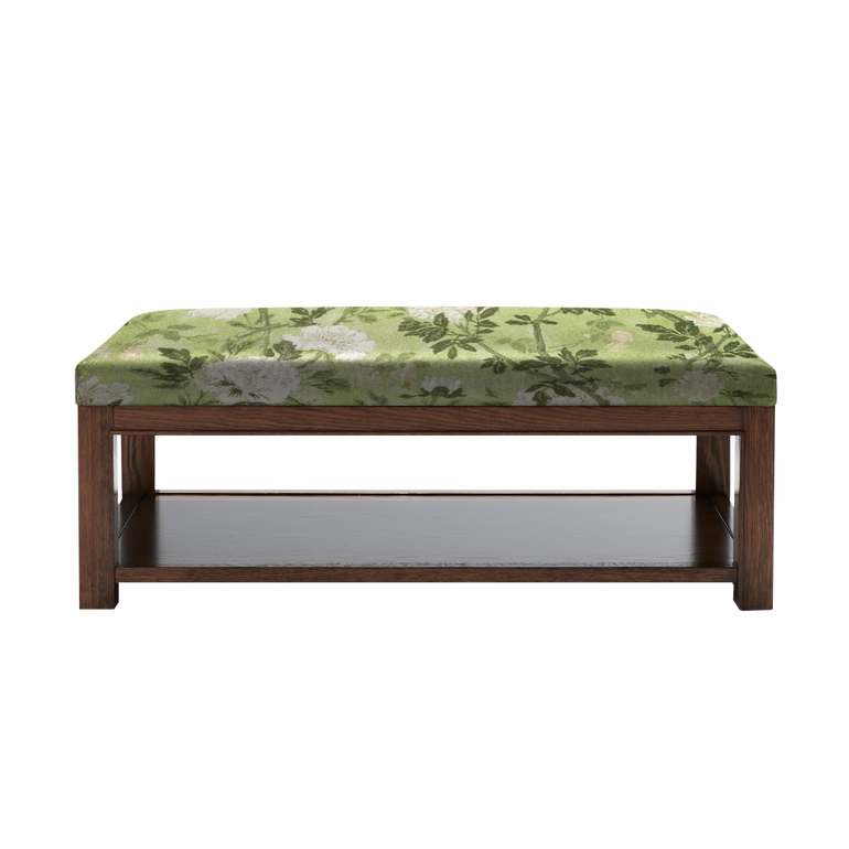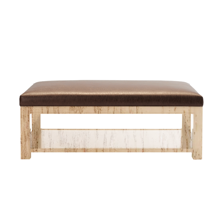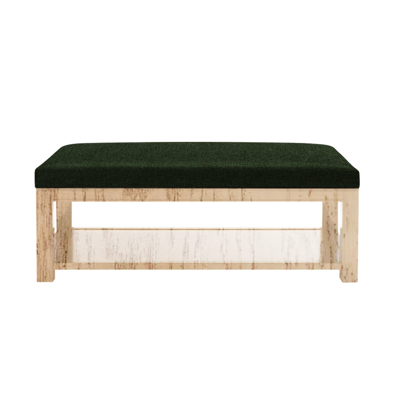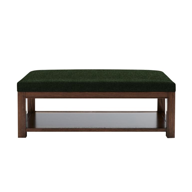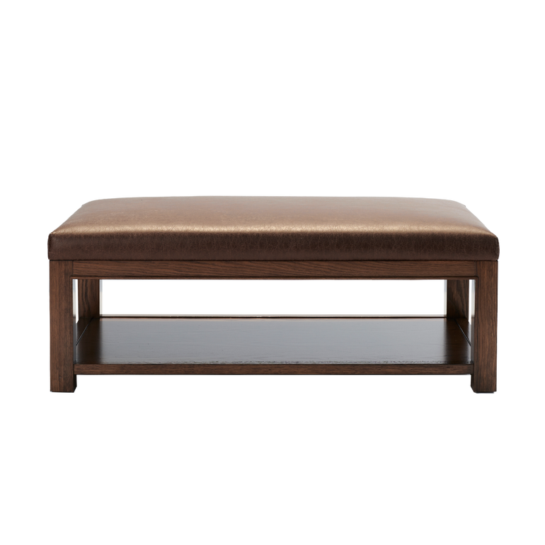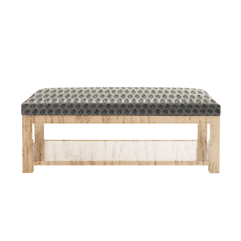 AKD’s go to ottoman. The wooden frame and shelf offer the opportunity to add baskets for storage, or books for styling.
