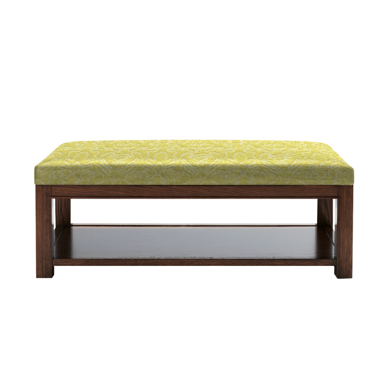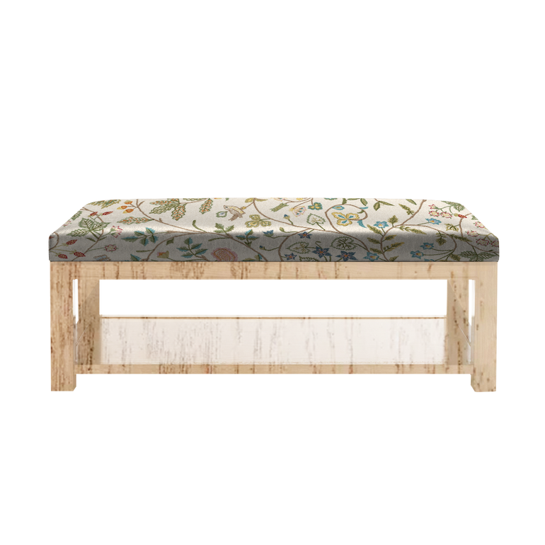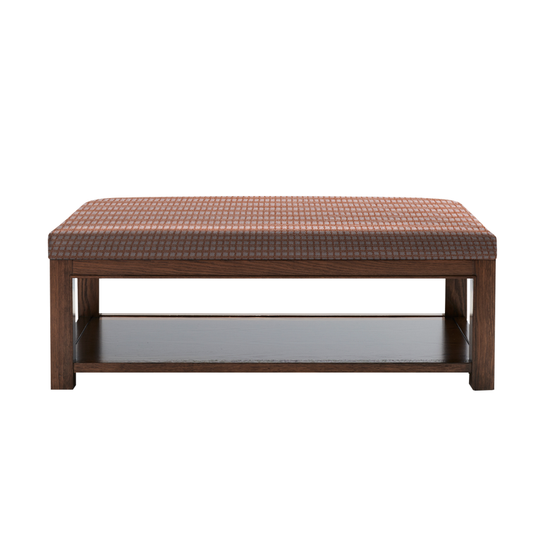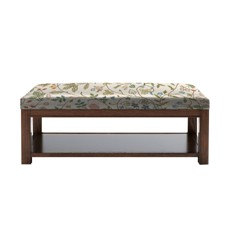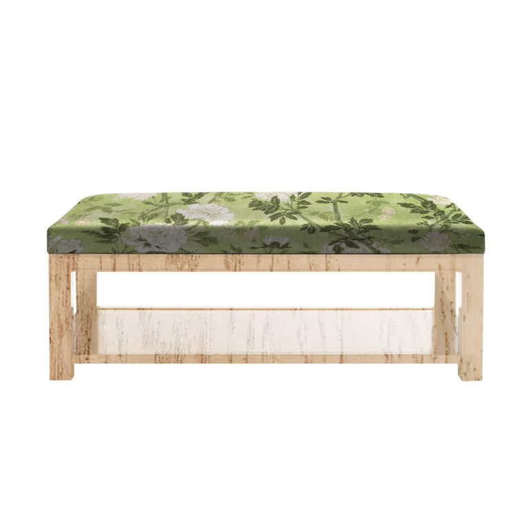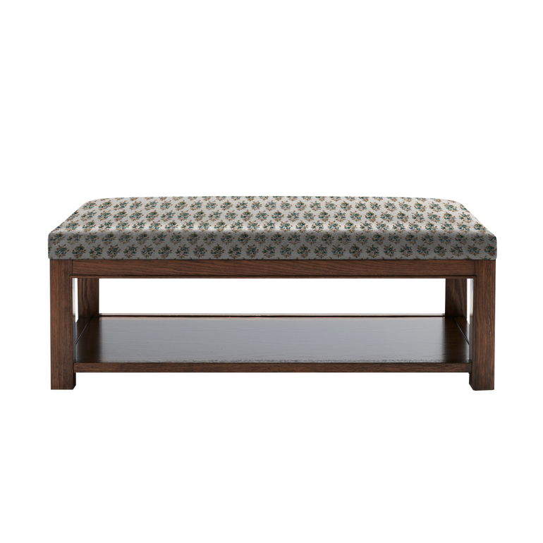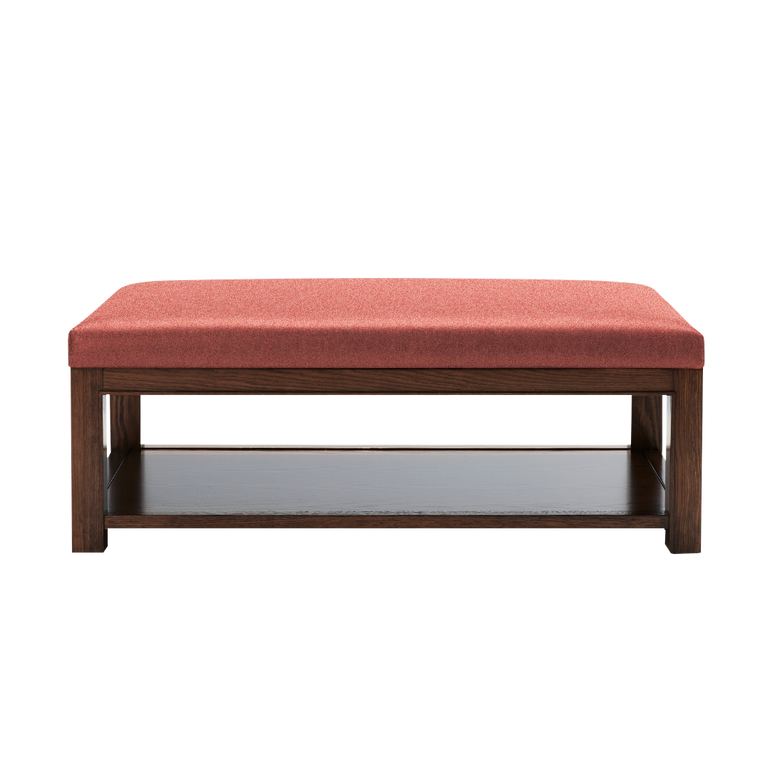 AKD’s go to ottoman. The wooden frame and shelf offer the opportunity to add baskets for storage, or books for styling.